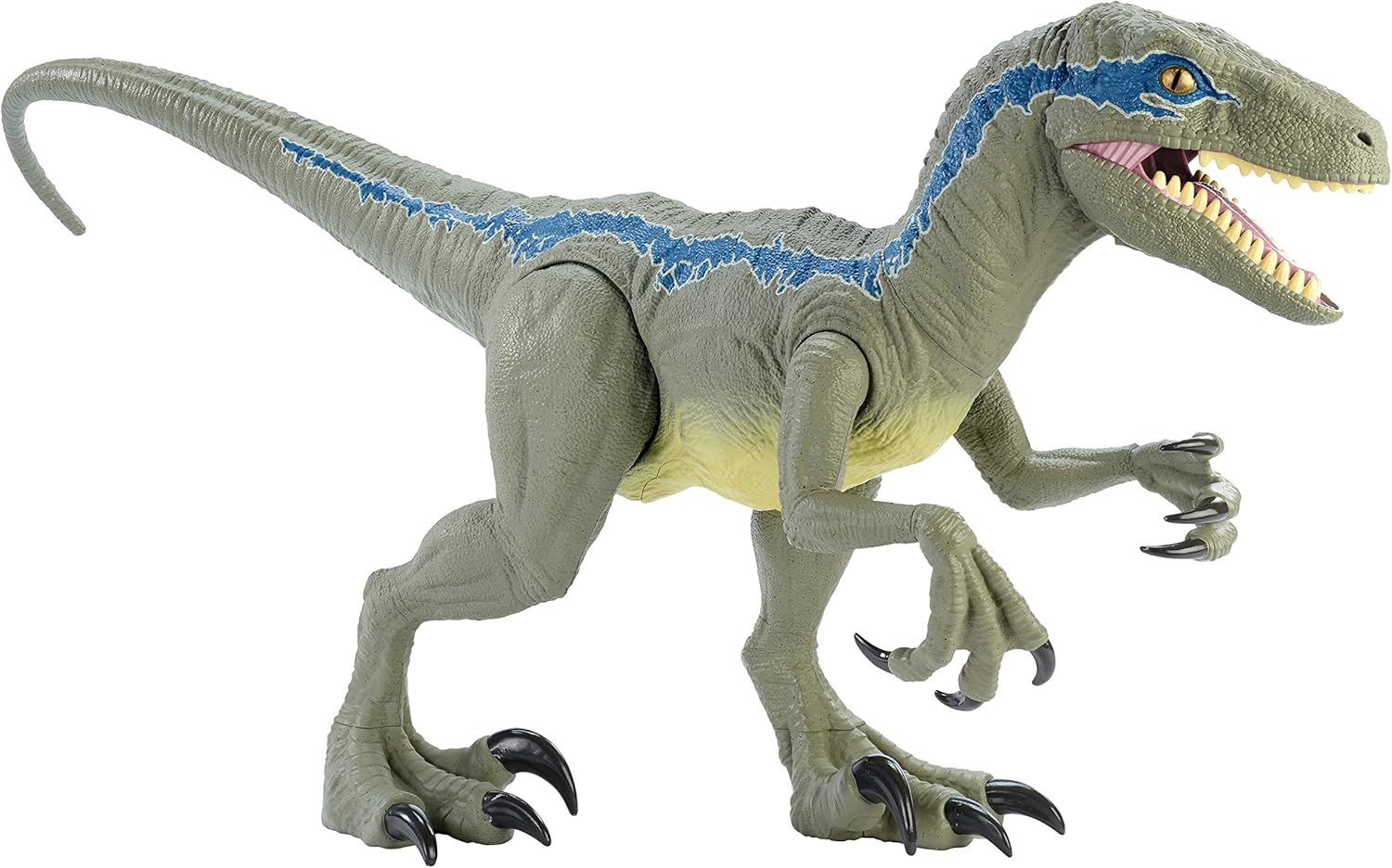 Jurassic World Grande figurine Super Colossal Velociraptor Blue avec pattes et mâchoire articulées, jouet pour enfant, GCT93