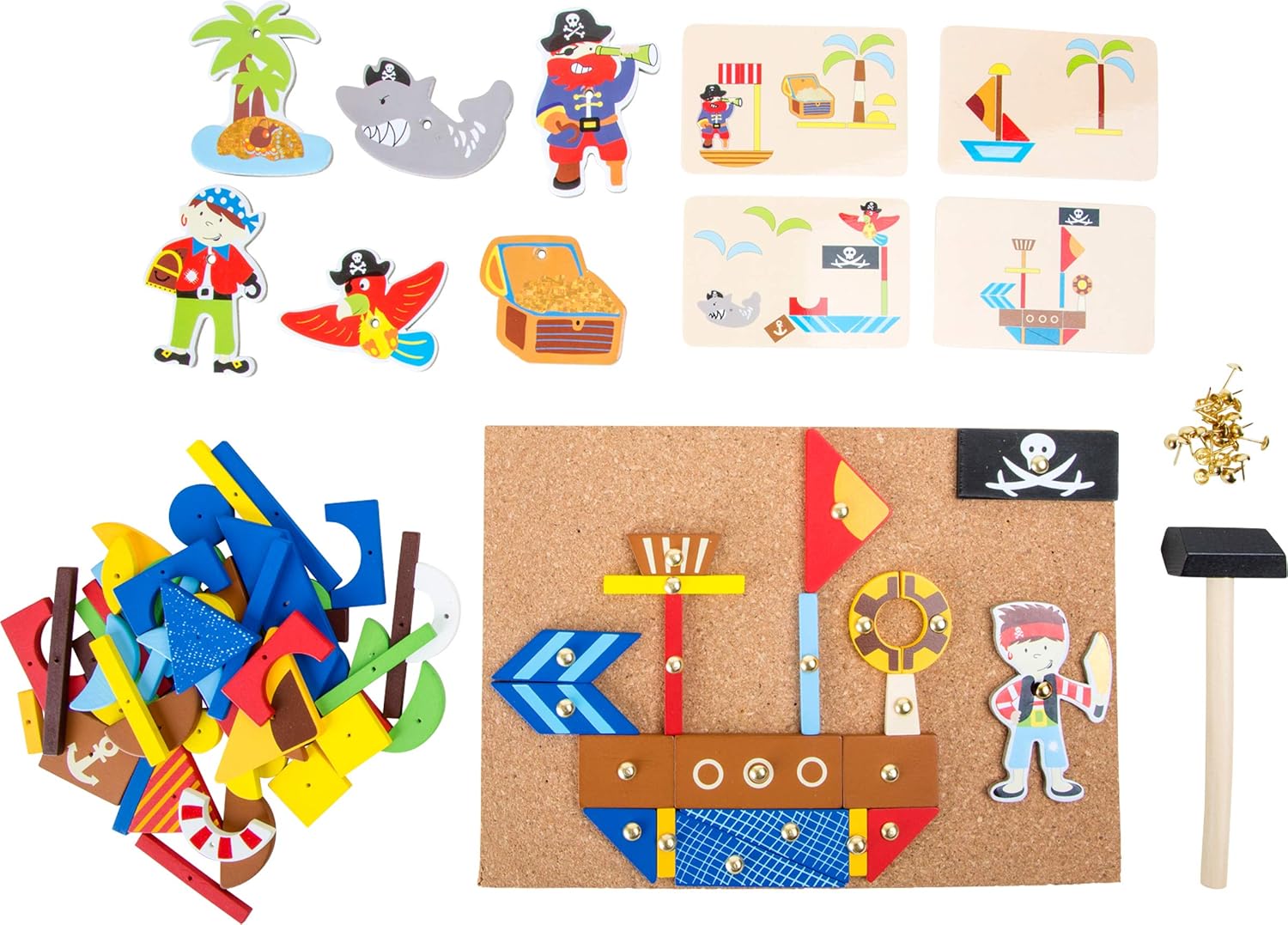 Small Foot 10226 Jeu de clous bois, planche en liège avec motifs de pirates à façonner, à partir de 6 ans jouet de motricité